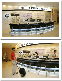 空港まで来る間にメガネを壊してしまった方、家にメガネを忘れてしまった方ご安心ください。当店なら度数決定後20分以内に作製しお渡ししております。